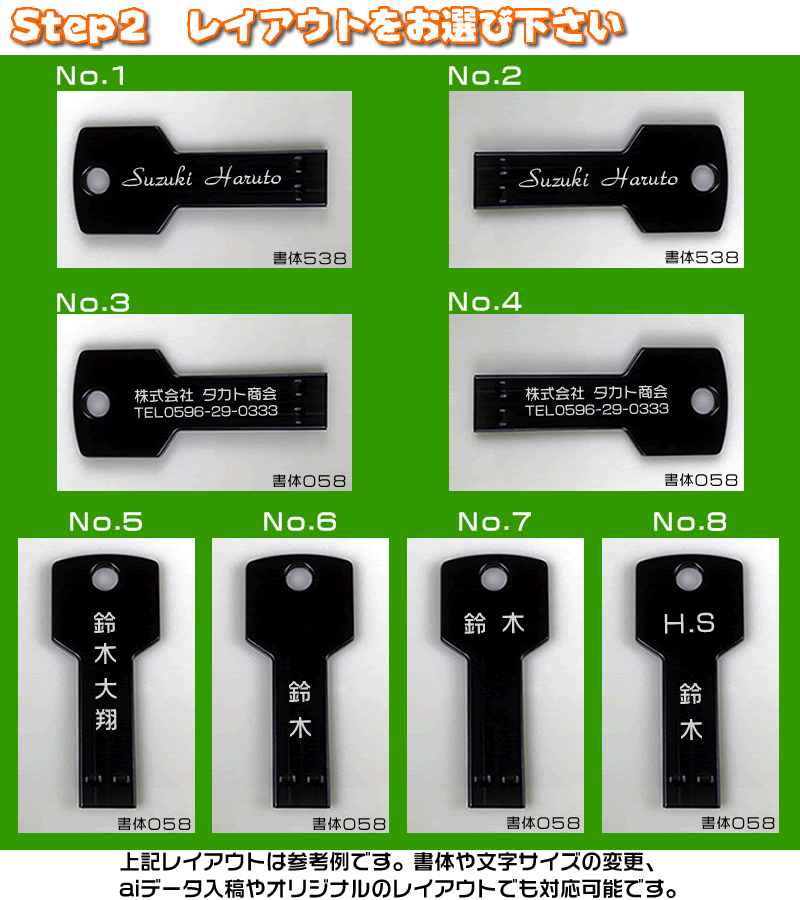 【商品情報】 ●キー型のメタルタイプUSBメモリーです ●本体カラー:ブラック・ブルー・レッドからお選び下さい 【記憶容量】 ●8GB 【素材・サイズ】 ●素材:メタル ●長さ:約57×24×3mm ●重量:約10g 【商品画像の仕様】 ●レイアウトNo02 ●書体:538(Suzuki Haruto) 【作成文字・内容について】 ●作成内容は『注文を確定する』ボタンの画面にある備考欄【文字加工商品はこちらに作製内容をご記入下さい】に記入下さい。